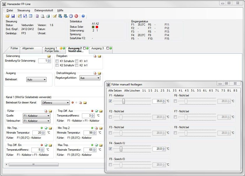 Über eine serielle Schnittstelle können die FP Steuerungen mit einem PC verbunden werden.Die Software FP-Line ermöglicht das schnelle und komfortable Einstellen der Steuerung und das Archivieren dieser, sowie das Dokumentieren von Anschlussbelegung und Einstellungen.